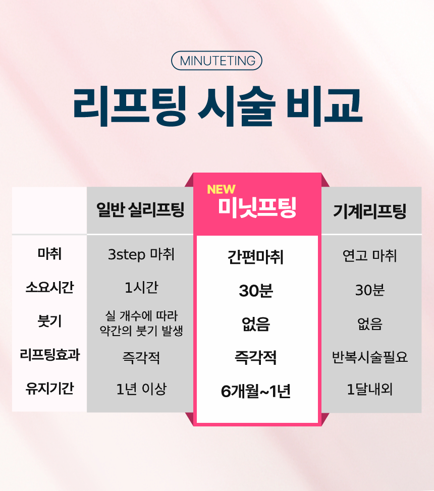 간편하고 쉽게, 기계리프팅보다 강력하게! 즉각적인 리프팅! 미닛프팅을 만나보세요.